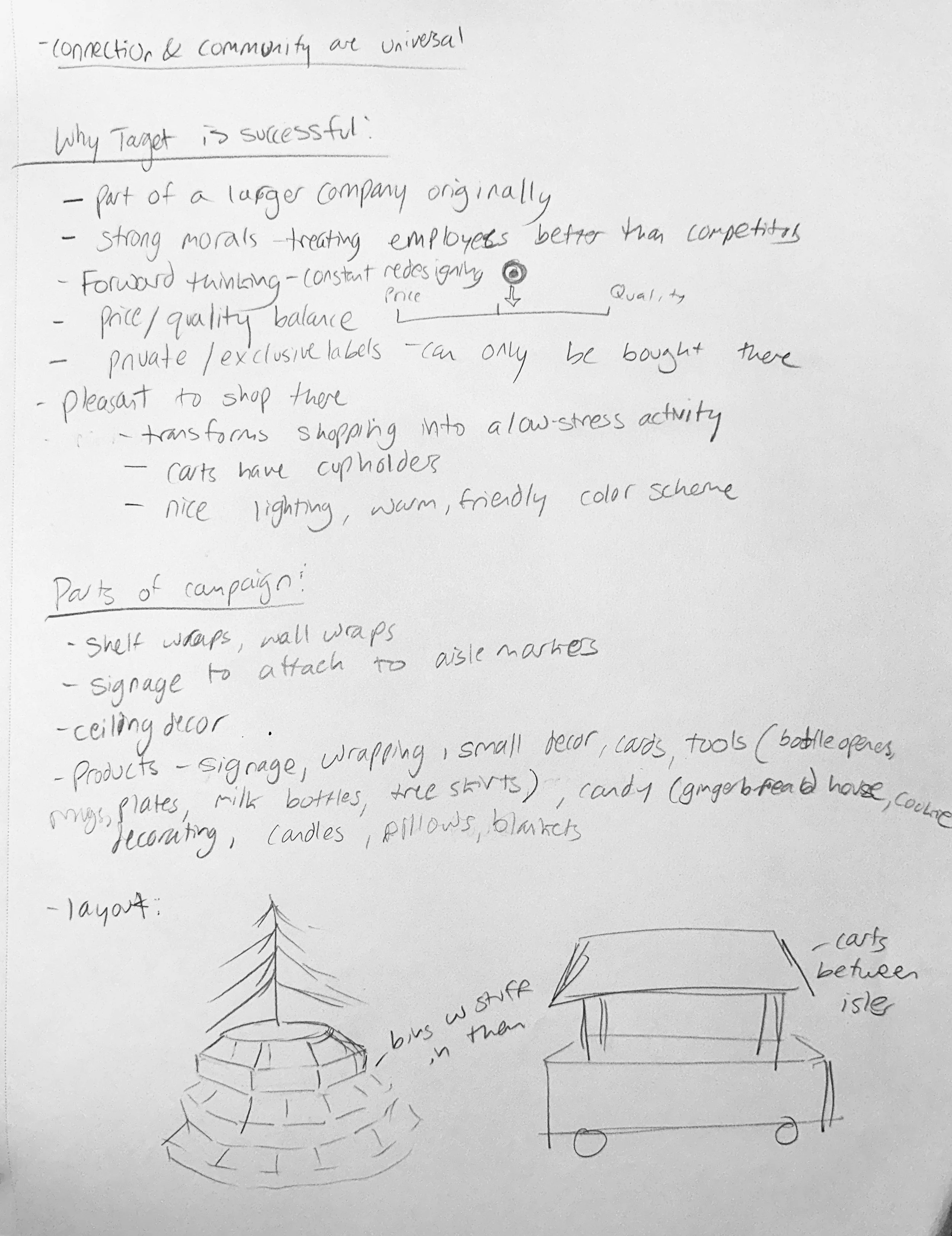 I began by researching Target’s brand identity and the strategies behind their successful campaigns. This helped me understand their visual language and marketing approach. From there, I explored a range of concepts through sketching and ultimately chose to pursue a modernized take on Scandinavian folk art.